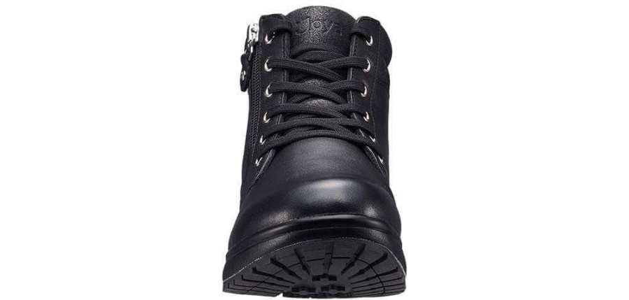簡単にエントリーできるジッパー付きのスマートなレースアップ ブーツ。柔らかく輝くスエードのパッド入りカラーを備えた柔らかいフルグレインレザーのアッパー。レザーとテキスタイルの裏地。独自のクッション効果を持つjoya Sensoソールテクノロジーで強化され、背中の筋肉と関節を最適に緩和します.
